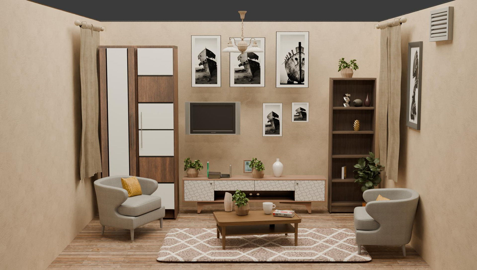 此处为输入提示词"一间温馨的客厅,配有舒适的扶手椅、画廊墙和时尚的咖啡桌"后生成的效果图示意